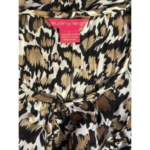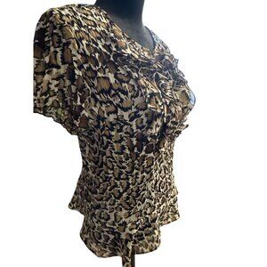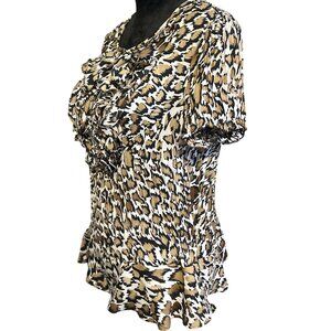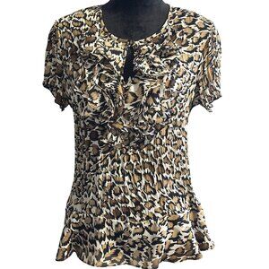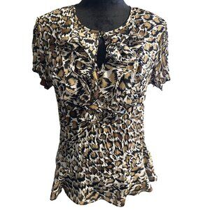 Sunny Leigh Womens Leopard Print Ruffle Blouse Large Short Sleeve