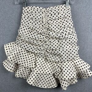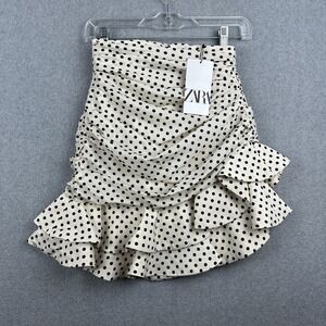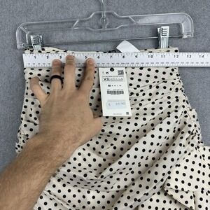 Zara Skirt Womens XS White Polka Dot Ruffle Ruched Mini Satin Lined Party NWT