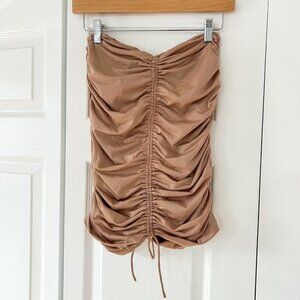 Michael Costello x REVOLVE Quinn Taupe Ruched Drawstring Mini Skirt Size Small