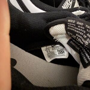 Classic Nike low-top sneakers. Leather upper with contrast panels. Cushioned insole for comfort. Durable rubber outsole for traction. Timeless black and white colorway.