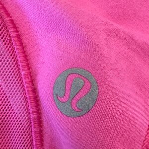 Vibrant pink athletic shorts from lululemon. Elastic waistband for a secure fit. Lightweight, breathable fabric. Curved hem with built-in liner for coverage. Flexible design for running and training.