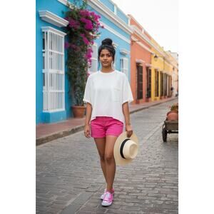 The Free People We The Free Fade Into You Crop Boxy Pocket Tee in Ivory is a stylish and comfortable t-shirt designed for women. This pullover tee features a solid ivory color with a cropped style, perfect for casual occasions during the summer and spring seasons. The addition of pockets adds a practical touch to the overall design, making it a versatile and trendy addition to any wardrobe.