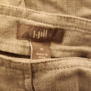 The J JILL Gray Metallic Linen Fit and Flare Sewn Seam Skirt in size 12 is a stylish and versatile piece for women. This skirt features a metallic pattern, zip closure, and a flattering fit and flare style. Made from a comfortable linen blend material, it is perfect for casual occasions during the summer, fall, and spring seasons. The J. Jill brand ensures high quality and trendy design, making this skirt a great addition to any wardrobe.