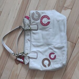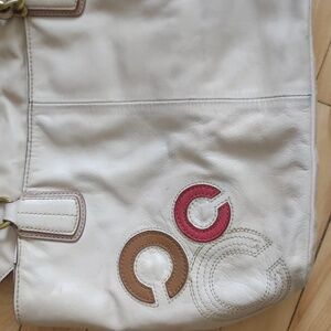 Coach Madison Whipstitch Tote Bag color cream size 16 x 10 inches, straps 8 inches still in good condition has a couple light scratches but nothing big and obvious. see pictures for measurements and condition any questions? Leave a comment below! bundle 2 or more items and get 20% off