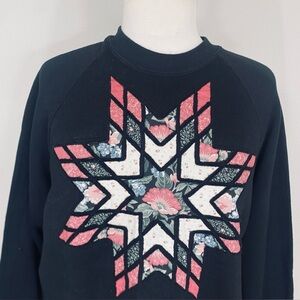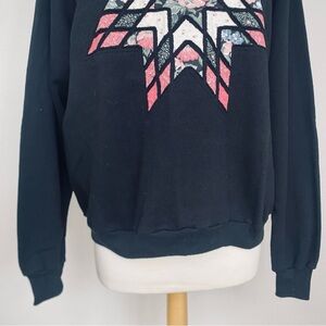 Vintage Women's Jerzees Black Quilted Star Crew Sweatshirt Size XL Cottagecore