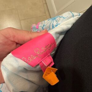 Lilly Pulitzer Blue Leaf-Print One-Shoulder Dress with Pink Pom-Pom Trim