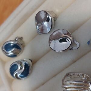 Lot Of 5 Pair Silvertone Clipon Clip On Earrings Liz Claibourne