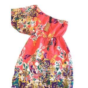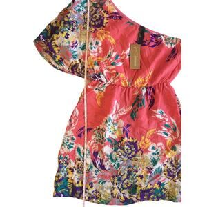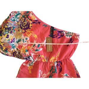 Francescas One Shoulder Floral Print Coral Dress Size Medium