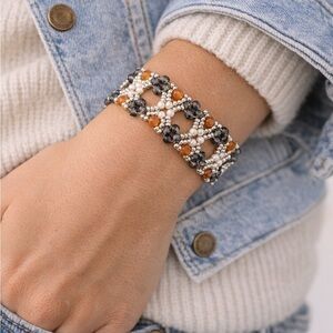 Hand beaded floral bracelet with intricate woven detail and dimensional texture