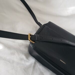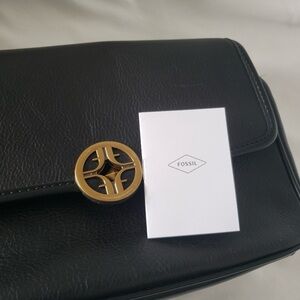 Fossil Purse Leather Jasmin Flap Crossbody Bag Black
