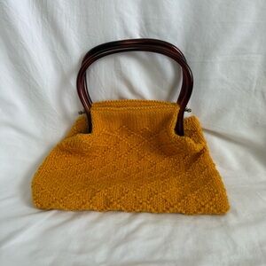 Yellow Knit Handbag with Brown Frame Handles