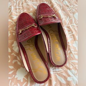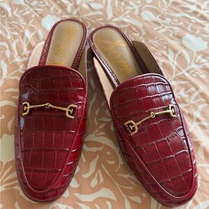 Sam Edelman Women's Red Croc-Embossed Leather Slide Loafers