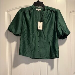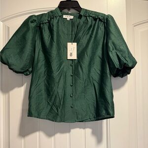 Structured lightweight blouse with puff sleeves. Covered button front for a refined look. New with tags paid over 70!