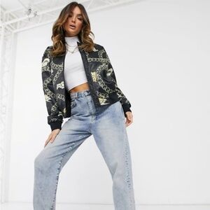 Nike Women’s satin black with gold chain bomber jacket size XS