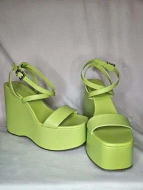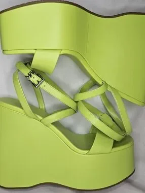 Michael Michael Kors Paola Platform Dress Sandal Bright Limeade Leather Strappy