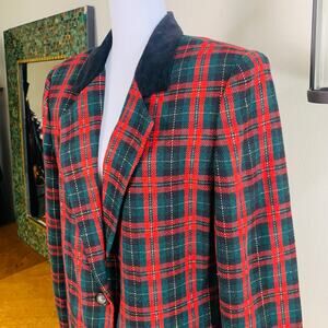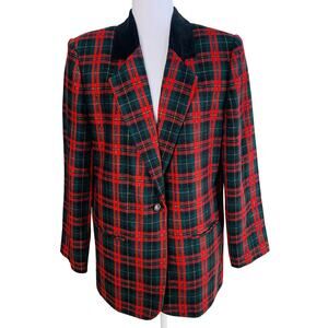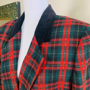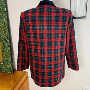 Vintage Sag Harbor Size 12 Velvet Collar Plaid Blazer Jacket Christmas Holiday