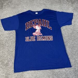 Vintage DePaul Blue Demons Shirt Mens XL Blue NCAA Champion Graphic Tee USA 90s