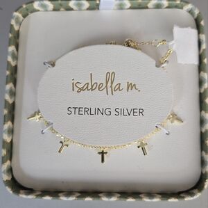 Elegant lsabella bracelet with multiple gold cross charms. Polished gold finish for subtle shine over sterling silver. Versatile piece for everyday wear.