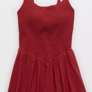 OFFLINE By Aerie Real Me Smocked Flowy Dress in Summer Burgundy Size L