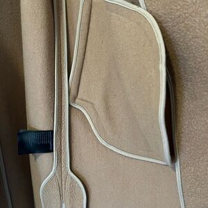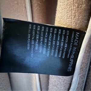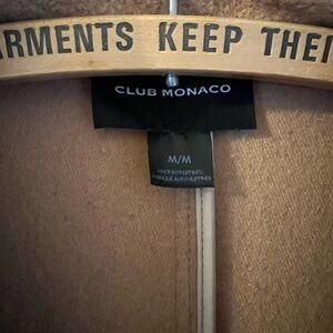 Elegant belted trench coat by Club Monaco. Wool-blend fabric with a soft camel hue. Wide lapels and a self-tie waist size medium. Classic silhouette with secure front pockets. Versatile piece for layering. Worn occasionally in excellent condition and quality. Love it but must downsize.