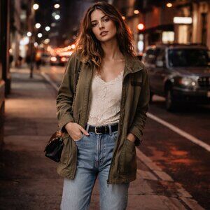 Tags: bp utility jacket olive military jacket soft grunge jacket free people style anthropologie aesthetic cargo jacket gen z it girl outfit model off duty jacket olive green jacket street style jacket lightweight fall jacket spring layering jacket edgy casual outfit soft grunge