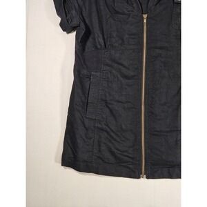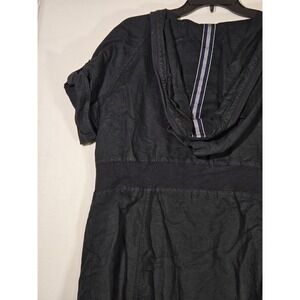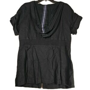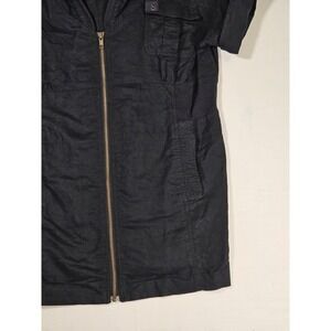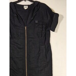 The Converse Women's Black Short Sleeve Zippered Hooded Shirt Dress is a versatile and stylish piece perfect for casual occasions and travel. Made from a comfortable blend of linen and cotton, this woven shirt dress features a V-neckline, short sleeves, and a zip closure for easy wear. With a retro 90s grunge vibe and vintage feel, this dress is accentuated by a hooded neckline, making it ideal for the summer, fall, and spring seasons. By incorporating elements of hipster, school, punk, and steampunk aesthetics, this Converse dress is a must-have for women who appreciate unique and comfortable clothing options. Could he a long shirt, could be a short dress. Please see measurements in photos. This is a pre-owned item but it is in excellent condition with little to no signs of wear or damage. Please see all photos.