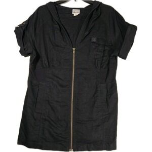 Converse Women's Black Short Sleeve Zippered Hooded Shirt Dress Skater Grunge