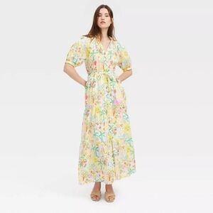Roller Rabbit x Target Maxi Dress Tropical Print Yellow Green Womens Size XL NWT