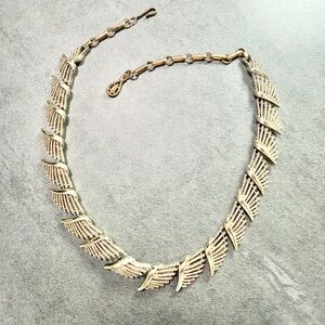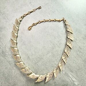 This item is a vintage Coro necklace featuring a silver-tone fan wing or palm frond design, likely from the 1950s.