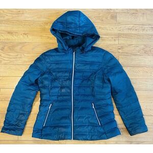 Time And True Puffer Jacket Women's Size L (12-14) Dark Teal w/ Removable Hood