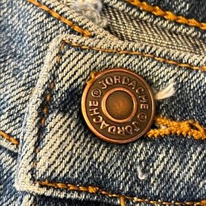 Get the iconic "Jordache Look" with these authentic vintage 80s/90s high-waisted jeans. This pair features the classic yellow and red embroidered logo on the back pocket and is made from a comfortable stretch denim blend that hugs your curves while keeping its shape.