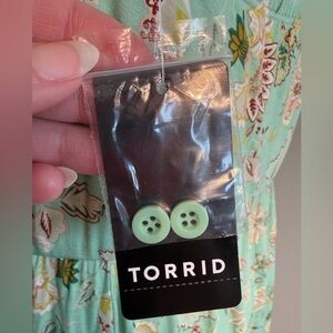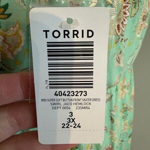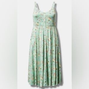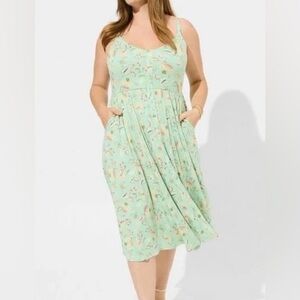 NWT Torrid Mint Floral Super Soft Button-Front Skater Midi Dress