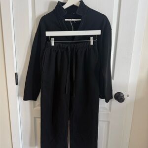 Amazon Women's Black Drawstring Wide-Leg Track Pants & Top F&E Dupe Set