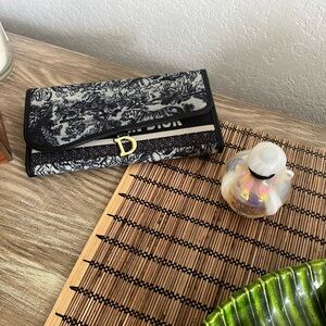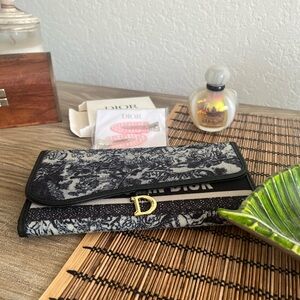Dior Luxury Bundle Lot : Toile de Jouy Tiger motif Oblique Saddle Clutch Wallet, Dior Pure Poison vintage original 2004 batch release! 1.7 oz, Dior Backstage Pink Logo Hair Clips