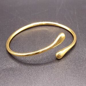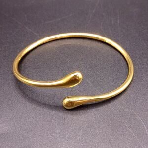 18k Gold Plated Bracelet Teardrop Minimalist Open Cuff Women's Vtg Birthday Gift