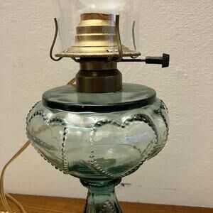 Vintage Findlay Queen of Hearts Glass Table Lamp in sea green color. Beautiful statement lamp. Has been tested and works. Excellent condition pre owned.
