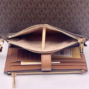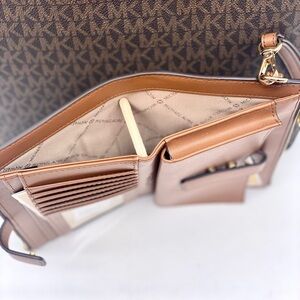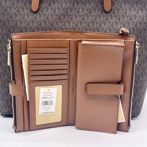 Michael Kors Double Pocket Tote Shoulder Bag And Wallet Set Brown