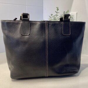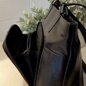 ~Black pebbled leather satchel/tote bag.