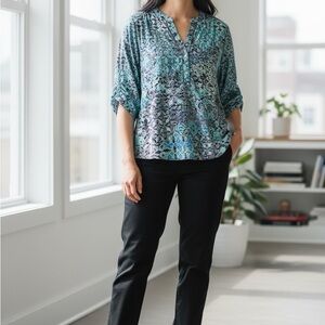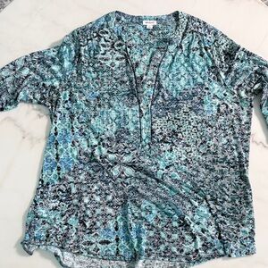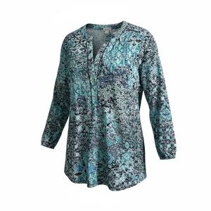 Westport Teal Mosaic Henley Tunic Size 1X