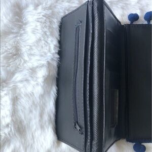 Frida Khalo Cartoon Face Wallet• Soft, woven material detail with Frida’s cartoon face print all throughout• Cute navy blue pom pom details on outer top flap• Magnetic button closure• Credit card, small mirror, 4 large money/receipt pockets, and coin zipper compartment• Like new without tags.