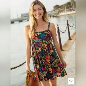 Natural Life Patti Mini Dress Black Neon Floral L