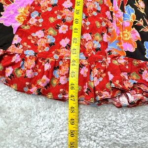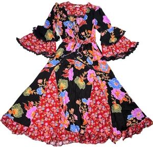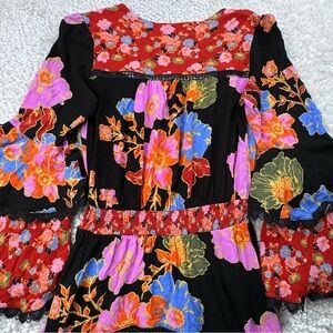 Free People Penny Printed Maxi Bodysuit Dress. Boho Floral Bright Lace Ruffle XS