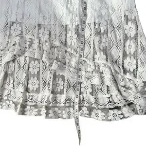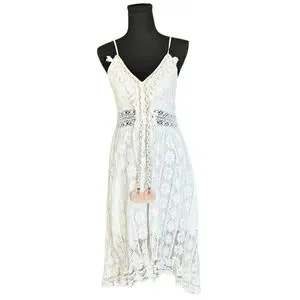 Boho Lace Midi Dress Ivory Crochet Tassel Pom Pom Cottagecore Festival Beach