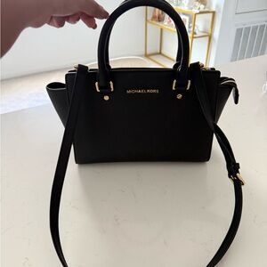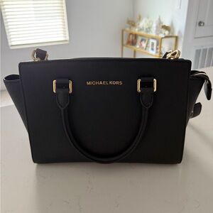 Michael Kors Black Saffiano Satchel with Gold Hardware