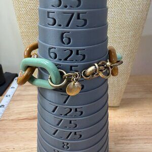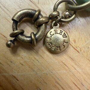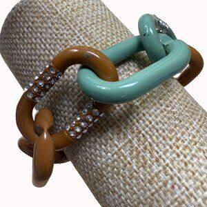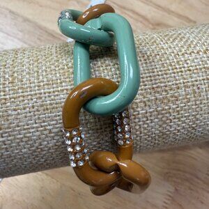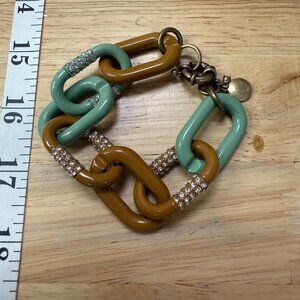 J Crew Chunky Chain Link Bracelet W/ Rhinestone Accents Green & Brown Enamel Gol