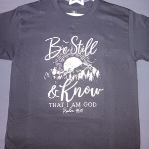 Soft black kids' short sleeve tee featuring "Be Still & Know" Psalm 46:10 graphic. Comfortable crew neck and breathable fabric for everyday wear. Faith-inspired design that pairs well with jeans or shorts.
