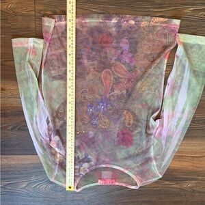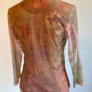 Vintage Y2K Entity by Daniel Benjamin mesh top sheer rhinestone fairy grunge boho tattoo print stretch small.