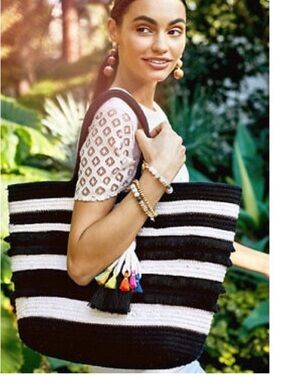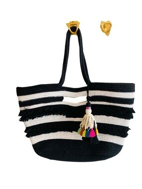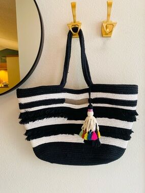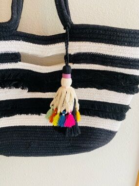 STELLA & DOT FOR Anthropologie Black & White Taj Tassel Tote