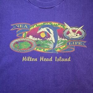 Vtg 90s Hilton Head Island T Shirt S Purple Sea Life Dolphin Sunset Graphic Tee