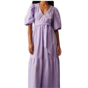 Marie Oliver Betti Aster Purple Lavender V-Neck Tiered Maxi Dress S